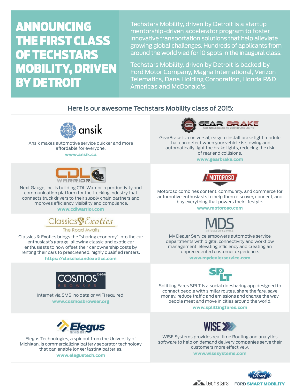 Announcing the 2015 First Class of Techstars Mobility, Driven by Detroit