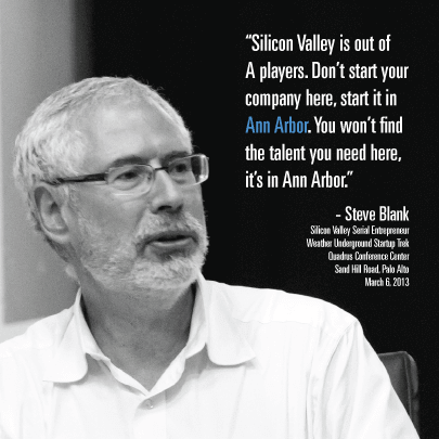 - Steve Blank said to Start Your Company Here — One of the greatest minds in startups said to start your company in Michigan, not San Francisco. ‘Nuff said.