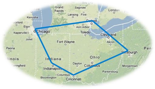 There’s a hidden diamond in the Midwest that contains an economy larger than California. Chicago to Detroit, down through Cleveland to Pittsburgh, bending through Columbus to Cincinnati and coming full circle through Indianapolis back to Chicago.